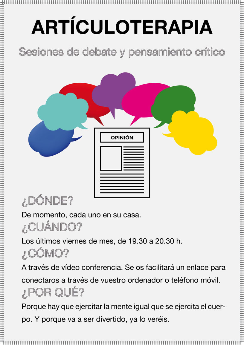 25. marzo 2021 Artículoterapia - 30 de abril Pincha aquí para acceder al artículo Pincha aquí para entrar a la sesión de Artículoterapia, 30 de abril - 19:30h tagPlaceholderEtiquetas: